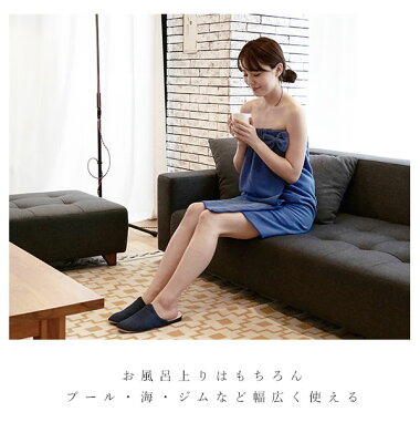 お風呂上りにパッと身にまとえるスカートタイプのラップタオルです。