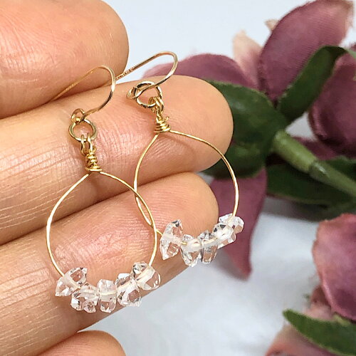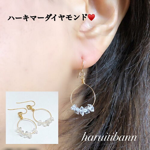 ハーキマーダイヤモンドフープピアス 14kgf 金属アレルギー対応 イヤリング ノンホールピアス 変更無料 ハンドメイド天然石ピアス 上質パワーストーンピアス キラキラ ゆらゆら オリジナルピアス 手作り