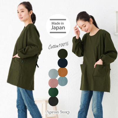 コットン100%の素材と8色の豊富なカラー、シンプルなデザインがおしゃれなかっぽう着。