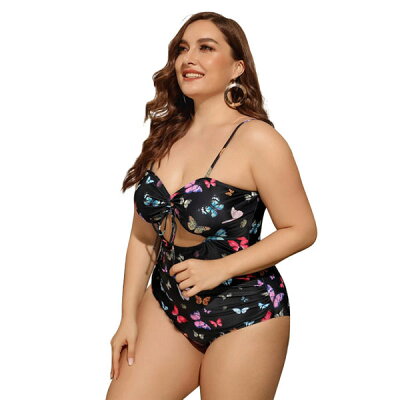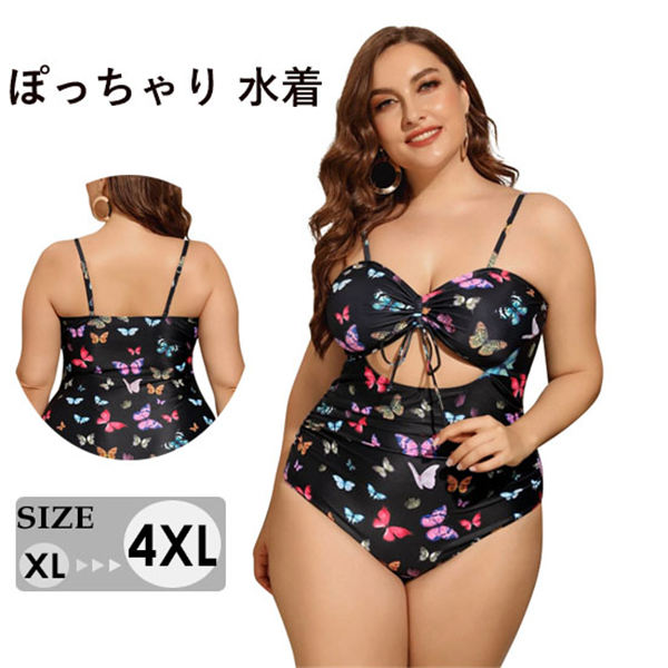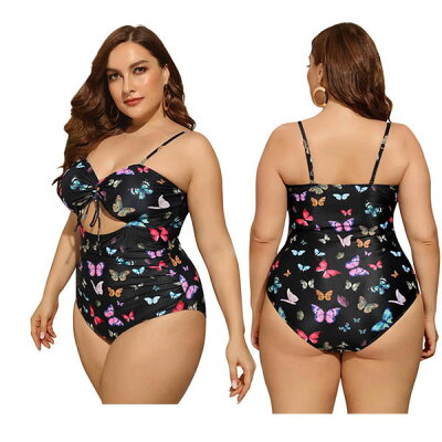 大きいサイズ 水着 蝶柄 レディース ぽっちゃり 水着 レオタード水着 体型カバー ママ水着 2L 3L 4L 5L かわいい ブラック df553c0c0l9/代引不可