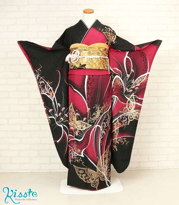 振袖 レンタル フルセット < 百合・蝶 / 黒 > 往復送料無料 成人式 結婚式 披露宴 結納 女性 振り袖 振袖セット 振袖レンタル 安い コスプレ レトロ プレタ 赤ピンク かっこいい 正絹 【レンタル】
