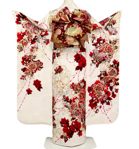 振袖 レンタル フルセット < 桜・薔薇 / 白 > 往復送料無料 成人式 結婚式 披露宴 結納 女性 振り袖 振袖セット 振袖レンタル 安い コスプレ レトロ プレタ かっこいい 正絹 【レンタル】
