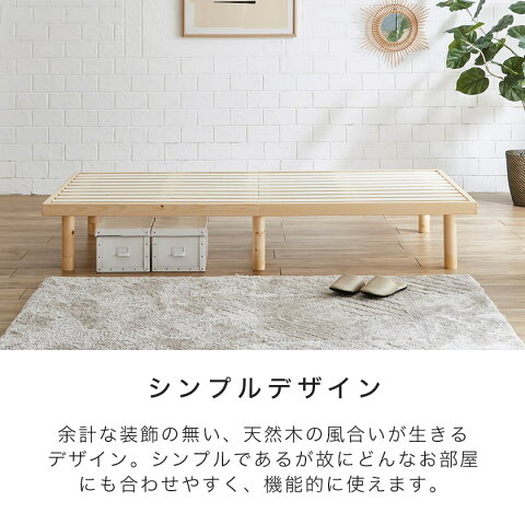サイズ(約) ・ベッド外寸:幅120×長さ195×高さ31.5cm・各脚タイプ高さ別床面高:5.5/11.5/25.5/31.5cm 材 質 天然木パイン材(ラッカー塗装)、天然木積層合板 耐荷重(約) 350kg 組 立 組立品(大人2人15分)※組立に必要な工具は付属しています。