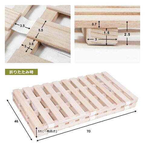 商品仕様 材質 本体:天然桐材(無塗装)滑り止め:EVA 商品サイズ 使用時:(約)幅140×奥行196cmx厚み2.5cm収納時:(約)幅70×奥行46×厚み11cm(一枚) 商品説明 ★