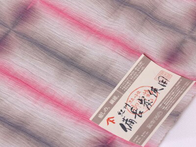 藤井絞謹製備長炭入り綿麻浴衣地 雪花リボン ピンクとグレー【絞り染め】【ゆかた】【夏祭り】【送料無料】【おすすめ】