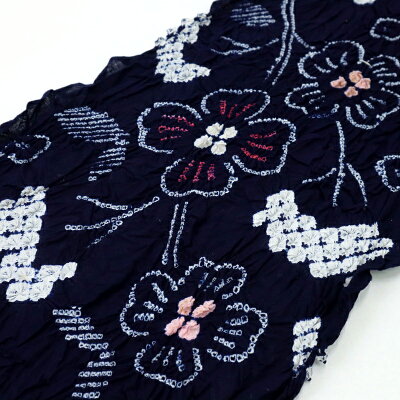 素 材 綿100 %《本場 有松鳴海志ぼり 絞り 浴衣 反物 枝 小花 紺 ネイビー お仕立て可 夏着物 反A9-6》 有松鳴海絞りの浴衣の反物です。