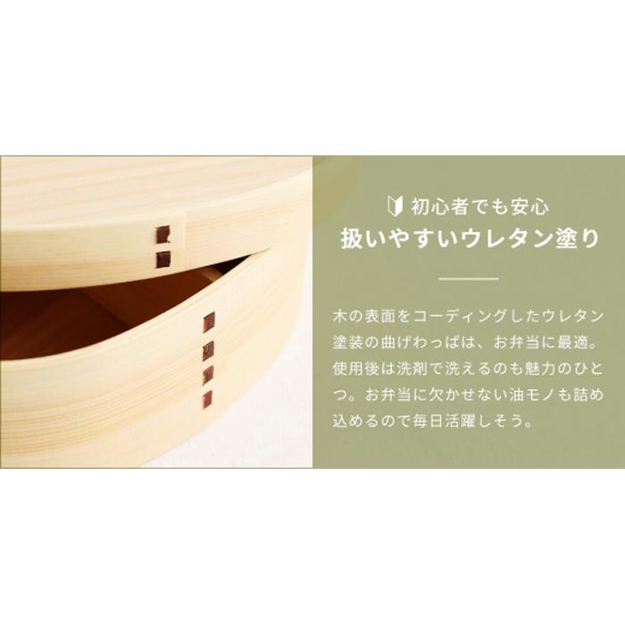 紀州の漆器職人が一品一品手加工で研磨し塗装をし、杉の木目をナチュラルに生かした曲げわっぱです。