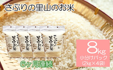 【ふるさと納税】定期便 【6ヶ月連続】さぶりの里山のお米 コシヒカリ精米 小分けパックのセット 8kg 【定期便・お米・コシヒカリ】