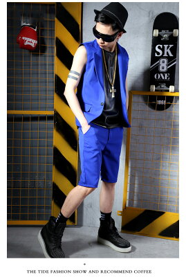 送料無料 ダンス衣装 JAZZ DS ストリート系 B系 韓流 ファッション ベスト ショートパンツ 上下2点セット 男性用 演出 舞台服 ダンスウェアスター ダンスウェア メンズ ダンスウエア トップス HIPHOP♪カジュアルスタイル ダンス 衣装 ヒップホップ ステージ衣装