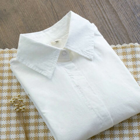 選べる4タイプの襟デザイン!目立たないホワイトボタンとナチュラルな木製ボタンから選べます!ほどよいゆとりのあるシルエットで動きを邪魔しない。