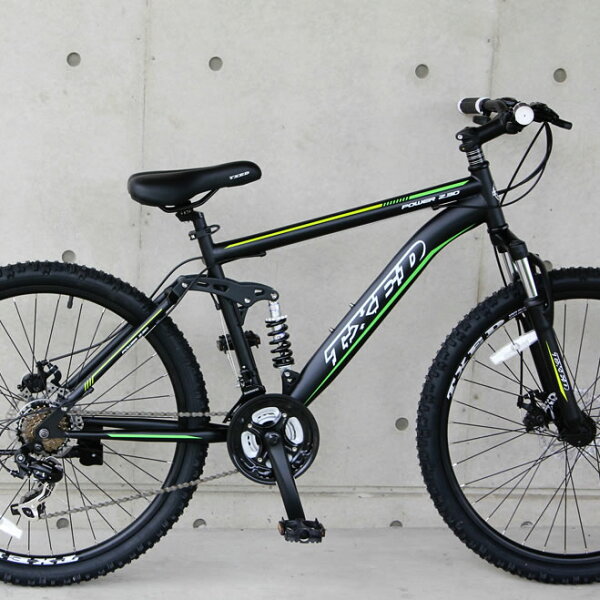 ディスクブレーキ、Wサスペンション、シマノ製21段変速のマウンテンバイク MTB 自転車です。