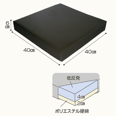 ○中身は低反発ウレタンフォーム、ポリエステル硬綿のリバーシブルでお使いいただけます ○防水タイプの合皮レザー仕様なので、不測の尿モレなどの場合でも衛生的に使用できます。