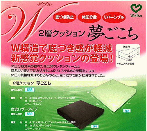 車いす用 2層クッション 夢ごこち 合皮レザータイプ 防水仕様 ブラック 40×40×6cm 低反発 体圧分散 (ウェルファ【敬老の日】
