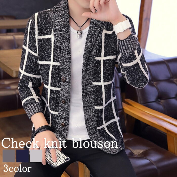 細身のスタイリッシュなシルエットで、どんなボトムスとも相性抜群です! 【商品名】チェックニットブルゾン【カラー】ネイビー グレー チャコール【サイズ】M L XL 2XL 3XL【サイズ表記】・Mサイズ:着丈62 身幅50 肩幅41 袖丈62・Lサイズ:着丈64 身幅52 肩幅42 袖丈63・XLサイズ:着丈66 身幅54 肩幅43 袖丈64・2XLサイズ:着丈68 身幅56 肩幅44 袖丈65・3XLサイズ:着丈70 身幅58 肩幅45 袖丈66【素材】コットン【重量】0.4kg【季節】春 秋 冬【スタッフコメント】秋冬の定番チェック柄が施された落ち着いた大人の印象のニットジャケット。
